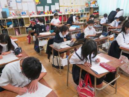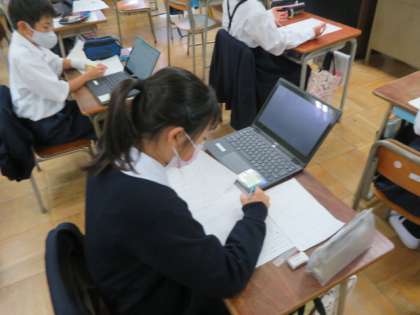 「和の文化について調べよう」で、和の文化を受け継ぐことをテーマにワークシートに調べたことをまとめていました。