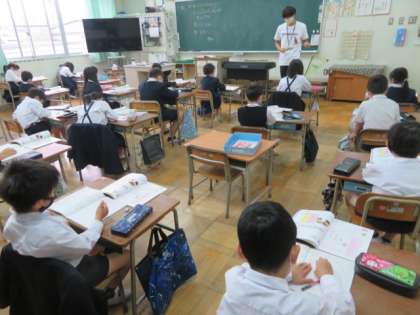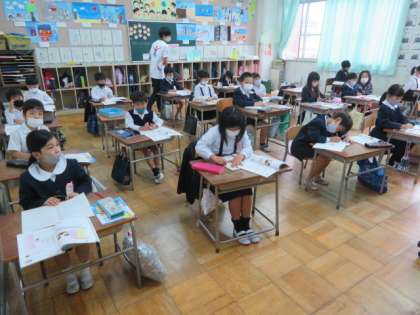 二の段の九九を使った問題にみんなでチャレンジしていました。