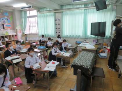「にた いみのことば」の学習で、「太陽」と「お日様」のように同じものを違う呼び方で表したとき、受ける感じがどうかということについても学んでいました。