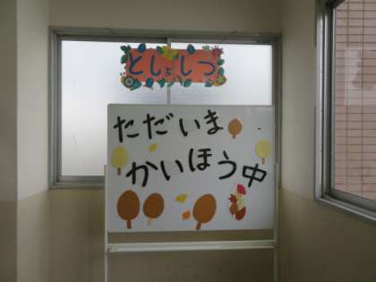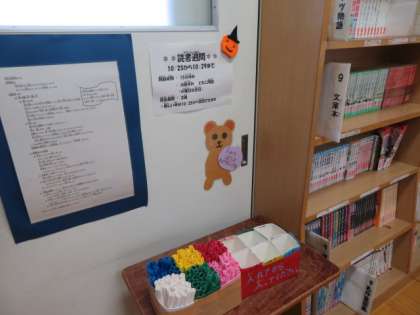 柏里小学校読書週間、季節感があふれる掲示物です。