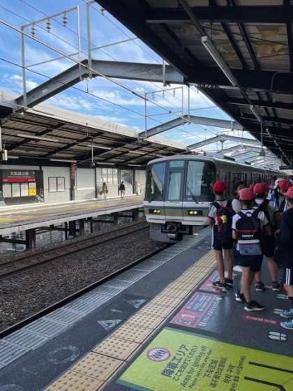 15:02 森之宮駅から乗車してきた5年生と一緒になりました。塚本駅到着予定時刻は、15:18です。