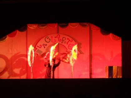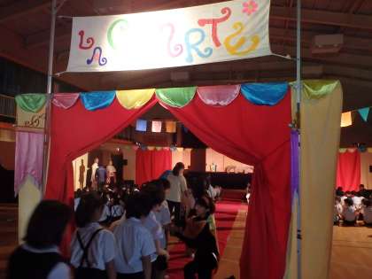 今日は、人形劇団クラルテによる「サーカスのライオン」の人形劇を講堂で見せていただきました。はじめに、チケットを子どもが持っていて、そのチケットをきるという仮想の設定から、子どもたちに働きかけ、物語の世界にはいっていきました。人間が操作しているとは思えないような人形の動きに、驚いたり、笑ったりでした。そして、最後は、ライオンが子どもを助けてしんでしまうというせつないエンディングでした。なかなか見ることのない、貴重な経験となりました。