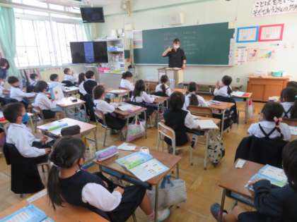「まねっこあそび」ということで、やまびこごっこの曲などを歌ったりしていました。