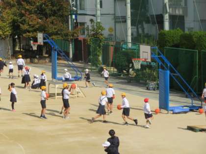 校長室から運動場を眺めていました。