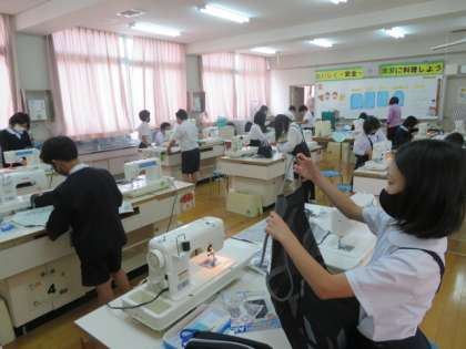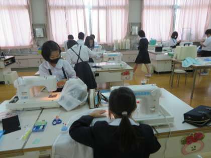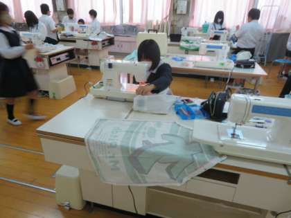 3時間目の1組に続いて、2組も4時間目にミシン縫いでエプロン作成に取り掛かっていました。