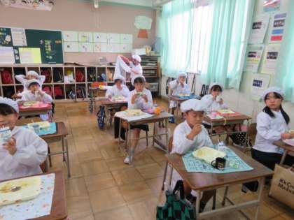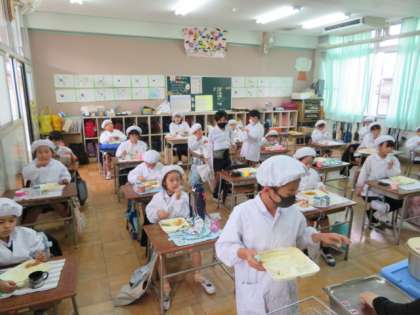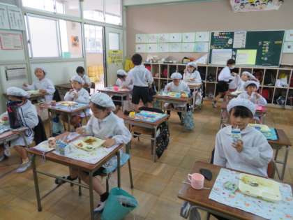 もちろん黙食で、給食を味わいながらいただいていました。