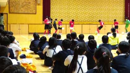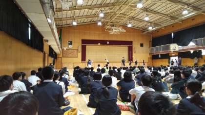 体育館で全体説明会の後、各部活動の実技発表を見学しました。