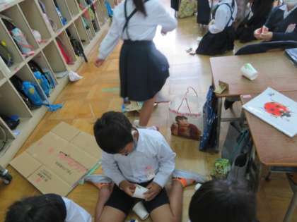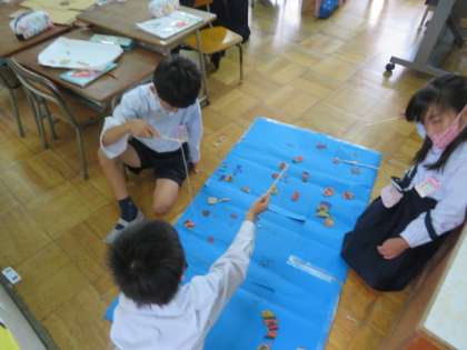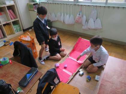 「うごくおもちゃをつくろう」の学習で、いろいろな動くおもちゃなどを各グループごとに作り、交代しながら作ったおもちゃで遊んだりもしていました。