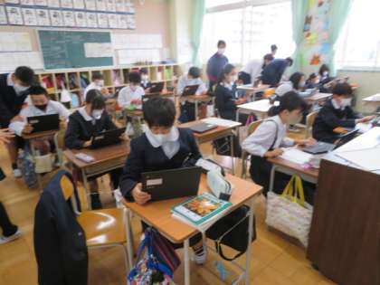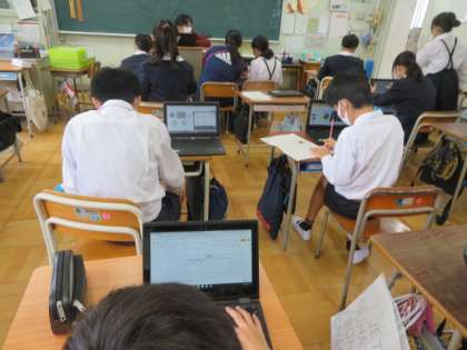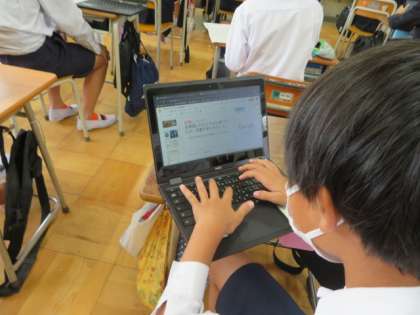 プレゼンテーションをするための写真を選んだり、発表原稿について話し合ったりしていました。