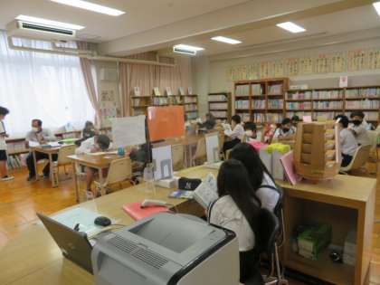 1時間目の前半は1組が、後半は2組が図書室を利用しています。