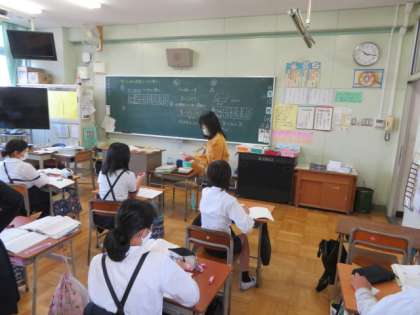 比例の関係をグラフで表したり、グラフから読み取ったりする学習をそれぞれの教室で展開していました。