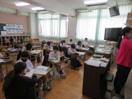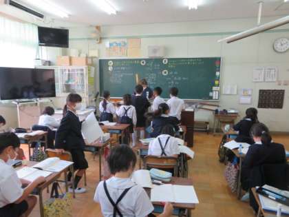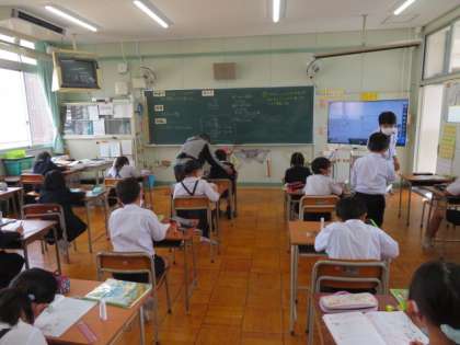 「十の位にくりあがりのある筆算のしかたを考えよう」をめあてにかけ算の筆算を習熟度別学習で3教室に分かれて行っていました。
