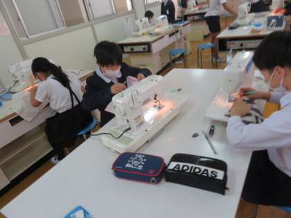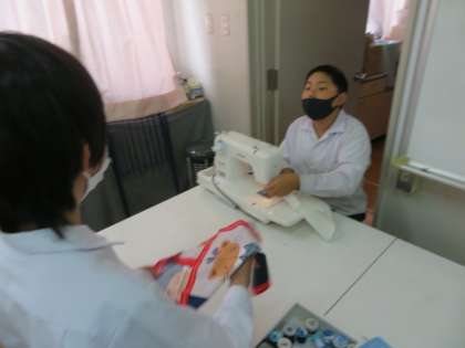 「もう一度生かそう」をテーマに、各自ハンカチ等の布を用意し、袋などをミシンで塗って作っていました。