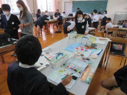 2組は、図工室で各自が絵を仕上げようと頑張っていました。