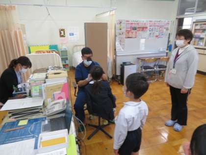 コロナ感染拡大防止対応で、ディスタンス・換気に努める形で歯科検診を行っています。