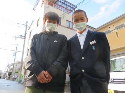 きちんと挨拶をする歌島中学校1年生の先輩です。