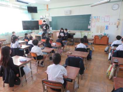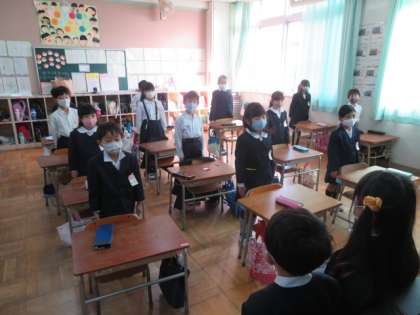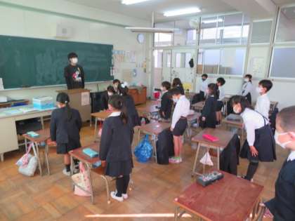 児童朝会後は、各学級でそれぞれに朝の会を行っています。