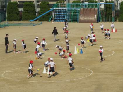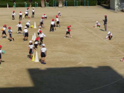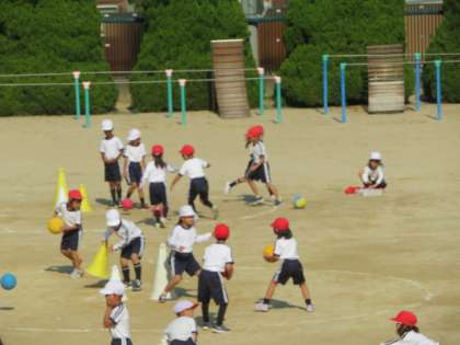 ボールを手で扱うボールゲームを、学年でしていました。