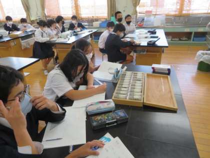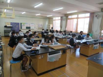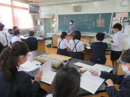 「地層のようす」の学習で、柏里小学校の地面の下を調べようをめあてに、ボーリング地質調査した資料を観察し、みんなの考えを出し合ってまとめていました。