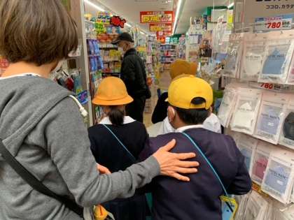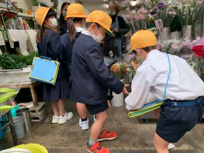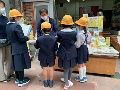 保護者の皆さまや商店街の皆さまに見守られ、安全に町たんけんを行うことができました。