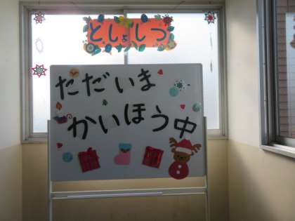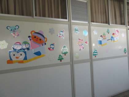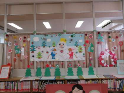 図書館ボランティアの皆様による季節感があふれる掲示物が、冬バージョンに替わりました。