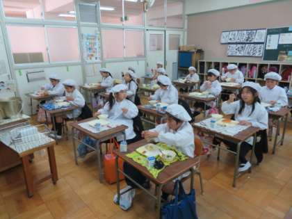 しっかりと味わいながらとてもおいしそうに給食をいただいていました。