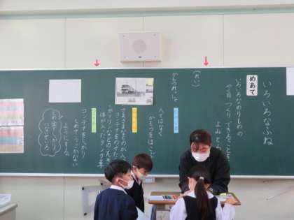 「いろいろなふね」の学習では、それぞれのふねの、やくめ、つくり、できることを読み取り、プリントにまとめていきます。だんだんやり方を理解し、まとめ方がうまくなっていってます。