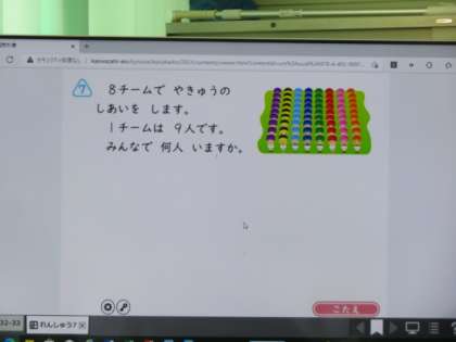 かけ算の九九を使って、文章題に取り組んでいます。毎日毎日繰り返し九九の練習を行い、すらすらと言えるようになっています。