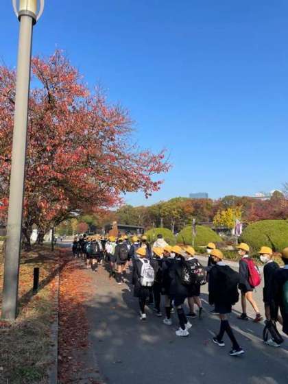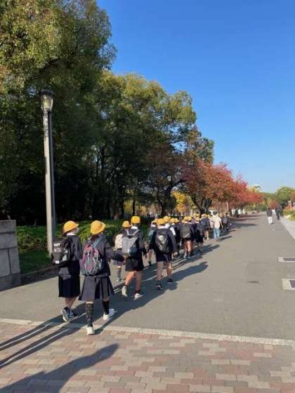 9:10 森之宮駅を降りて、大阪城公園を歩いています。
