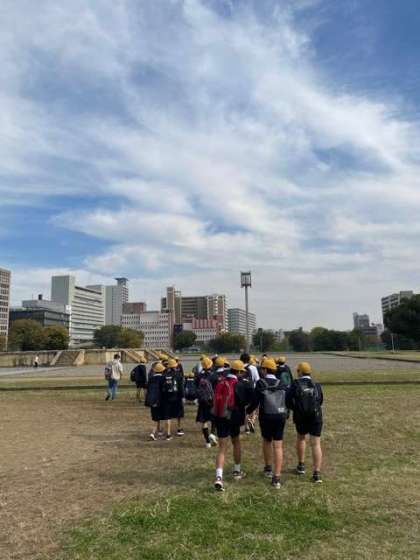 12:10 難波の宮跡に着きました。難波の宮跡についての話があった後、お弁当をいただきます。