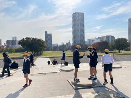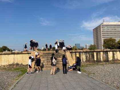 12:45 食後は、大極殿跡でのびのびと遊んでいます。体力のある6年生です。