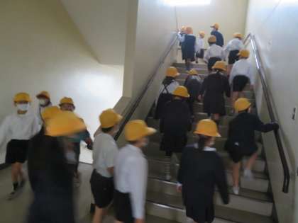 この後、2時間目の時間内に1年生と5年生が避難訓練を行います。
