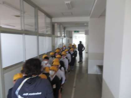 続いて、大津波がくる想定で、4階の家庭科室前まで2次避難を行いました。