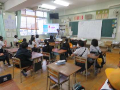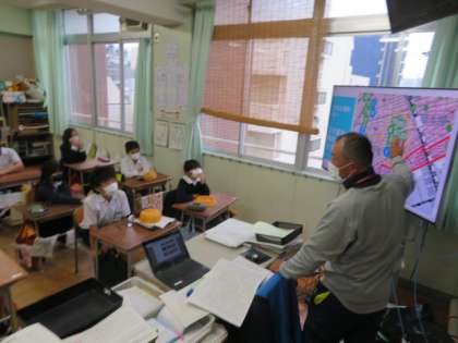 5年生は、各学級でハザードマップの確認作業を行っていました。