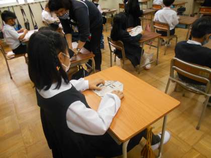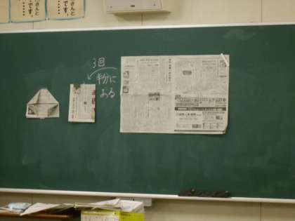 2年生も、新聞紙でお皿やスリッパ作りにチャレンジしていました。