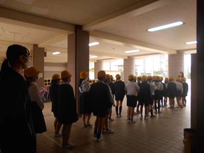 この時間は、3・4・6年生が、順に避難訓練をしました。