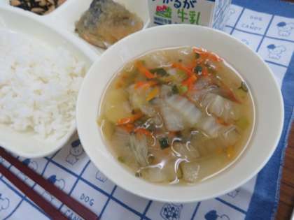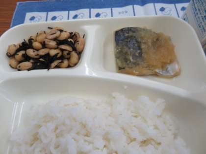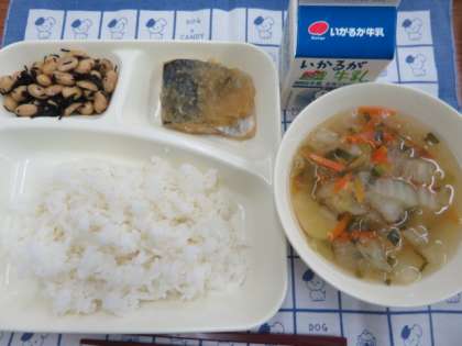 献立は、サゴシのおろし醤油かけ、里芋のすまし汁、大豆の煮もの、ごはん、牛乳でした。