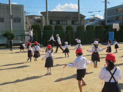 いろいろな協力があって、なわとびタイムが行われていました。
