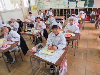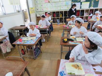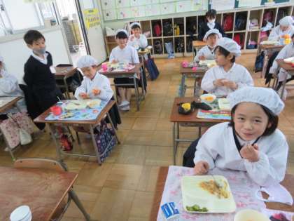 静かにしっかりと味わいながら、楽しそうに給食をいただいていました。