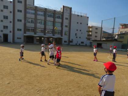 休み時間もボールを使った遊びを楽しんでいる2年生の子どもたちです。
