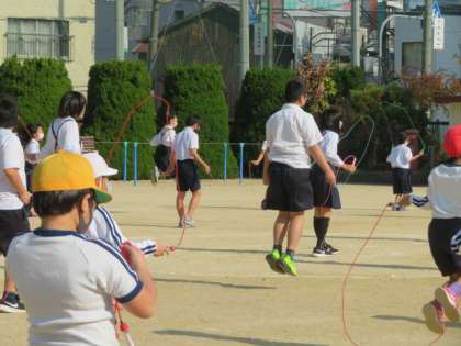 今日は、1・3・5年生がなわとびタイムにチャレンジしました。