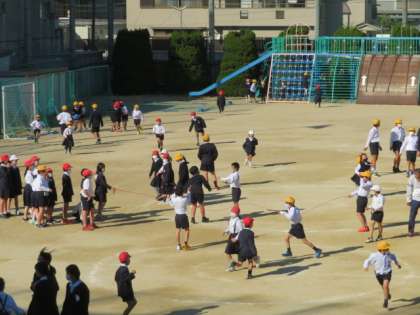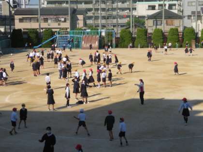 広い運動場いっぱいに多くの子どもたちが、思い思いに遊んでいます。