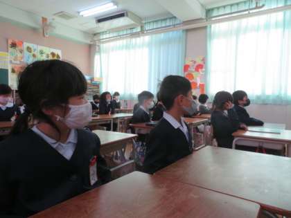 子どもたちは、最後までしっかりと大型モニターを観ながら視聴していました。