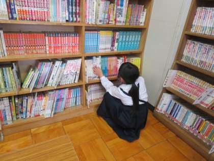 本の返却、貸し出し、自由読書等を行っています。
