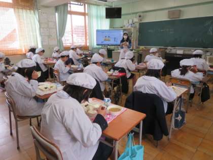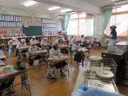 いつも静かに落ち着いて、よく味わいながらしっかりと給食を食べている5年2組。