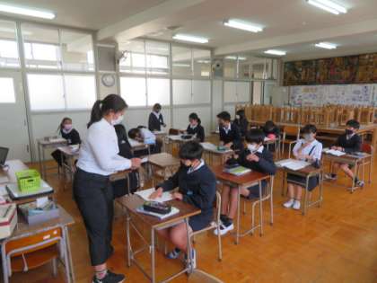 習熟度別少人数学習で3教室に分かれて行っている5年生算数の校内研究授業を行いました。