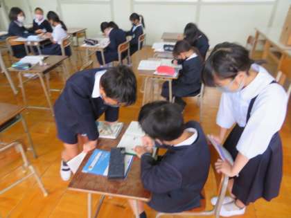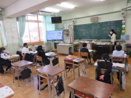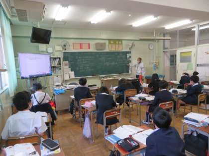 研究授業の教室を含めて3教室に分かれ、習熟度別少人数学習で「割合」の学習をそれぞれに進めていました。