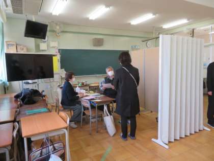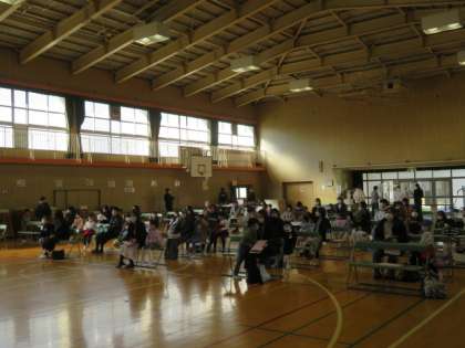 講堂で校長のあいさつ、担当からの説明後、保護者付き添いで各診断・検査会場を回っていただきました。