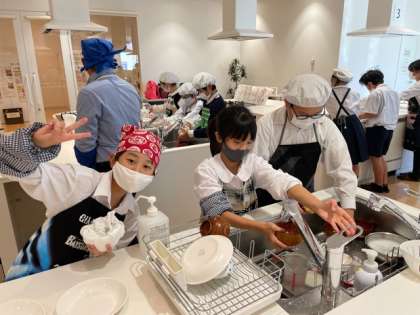 12:55 みんなで役割を分担して、食器洗い等をしています。