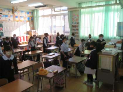 朝の会で、みんなの前でスピーチをしました。「○○のくだものが好きです。その理由は○○だからです。」とちゃんと理由まで話をすることができました。